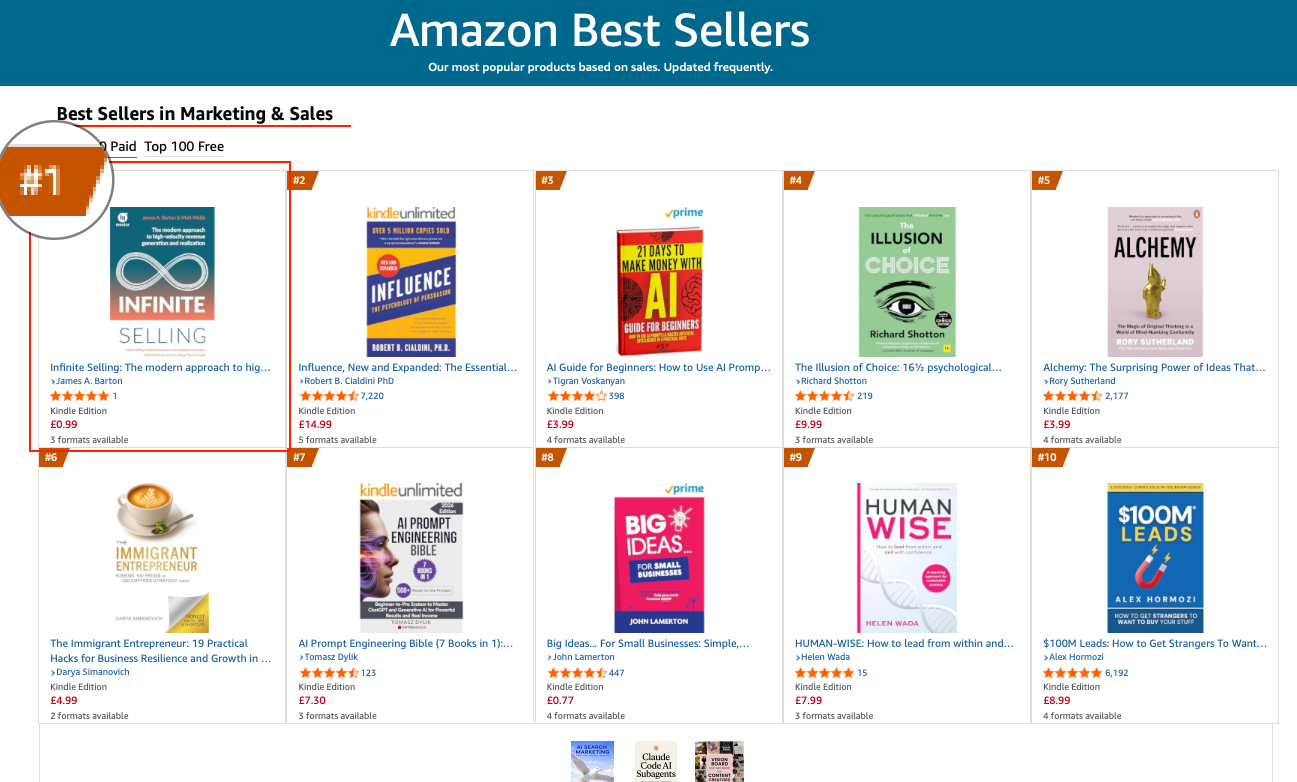 Infinite Selling, co-authored by Matt Webb and James Barton of Mentor Group, has topped the Amazon Bestseller list for Marketing and Sales.